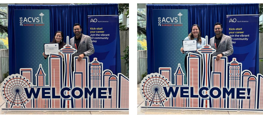 AO North America was honored to present two awards at the ACVS Surgery Summit in Seattle, WA in October 2025 — an event that highlights innovative advancements in veterinary surgery and research. Each year, the winning resident research abstracts are chosen based on their cross-disciplinary orthopedic relevance and embodiment of the “one medicine” spirit of AO North America.